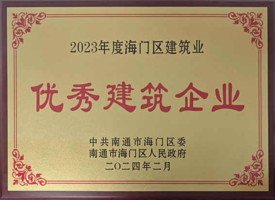 公司再获“2023 年度海门区建筑业优秀建筑企业”称号